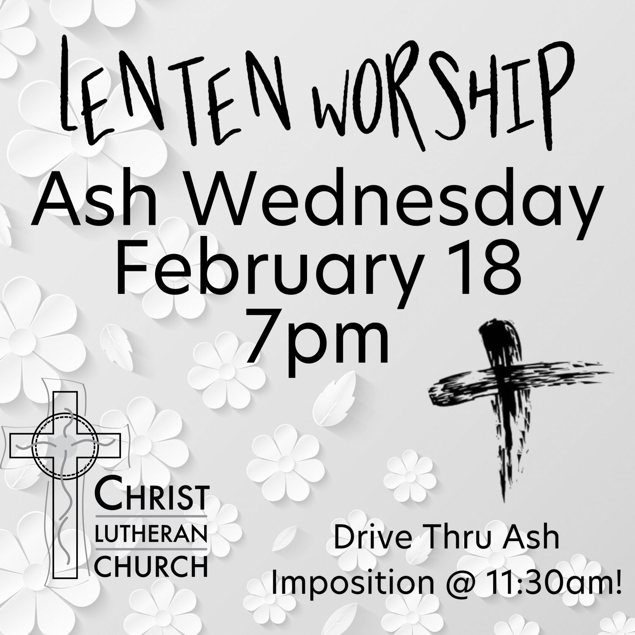 Ash Wednesday, February 18 we will offer our “Ashes-to-Go” Drive Thru Ash Imposition from 11:30am-1:30pm in our church parking lot. Our evening worship will be at 7pm and will be live streamed. We hope you will join us as we begin this season of Lent.